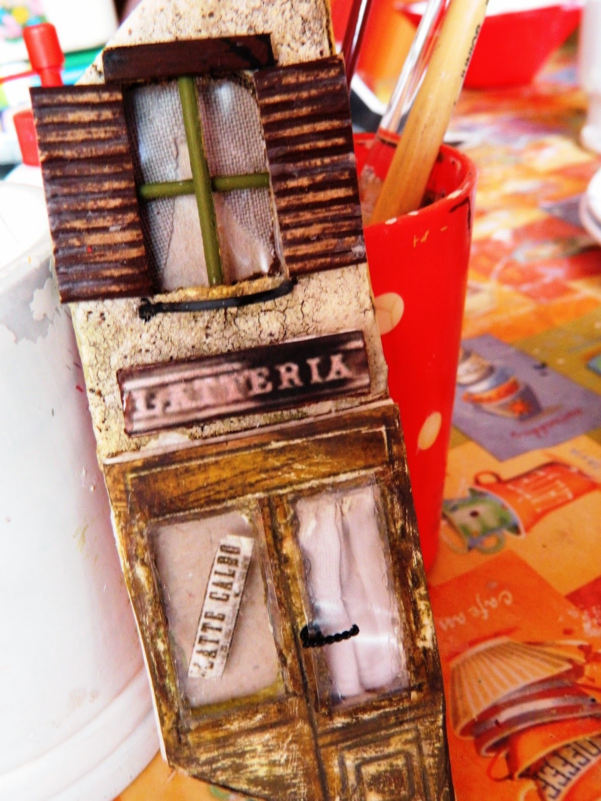 Nel corso degli anni è cambiato anche il mio modo di interpretare le ambientazioni su tegola, basti pensare che mentre nei primi lavori mi servivo di elementi (porte-finestre ecc.) venduti in serie, successivamente ho guardato con occhi diversi oggetti di uso comune riciclandoli e trasformandoli in dettagli per le mie tegole...