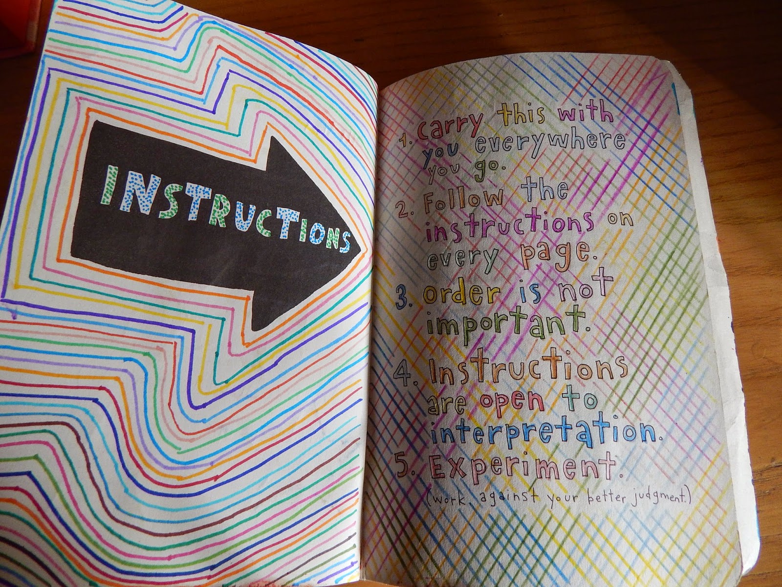 Piccola introduzione, per chi non sa cos'è Wreck this journal: è un libro (io lo definirei più un'idea geniale), creato da Keri Smith, in cui il lettore, diventa autore insieme a lei di questo libro. In pratica, in ogni pagina, viene dato un compito, che il lettore può interpretare un po' come vuole, in base alla sua immaginazione, e lo scopo è praticamente quello di distruggere, dare un'aria estremamente vissuta e personale al libro, una volta completato.