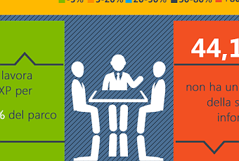 Le aziende innanzitutto: secondo un'infografica di Microsoft (vedi sopra), quasi il 24% di queste ha ancora l'80% dei PC con Windows XP. Incrociamo questo dato con il fatto che più del 90% delle aziende ritiene che le vulnerabilità software NON siano un fattore di rischio e avremo la "tempesta perfetta" (cit.).