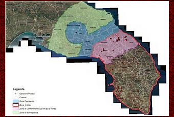 per cui l’intero impianto dell’ “affaire” secondo alcuni andrebbe rivisto e ridimensionato. Interviste, lettere, comunicati stampa in tal senso che non vi dico. Speranzoso scarico il file ( finalmente una buona notizia ) e do un’occhiata veloce al rapporto, per capire subito che non è così. Il rapporto del Ministero, in base ai dati forniti dal Commissario, dice sostanzialmente che, dalle analisi svolte dall’ottobre 2014 al giugno 2015, nella parte esterna alla provincia di Lecce , quella in violetto dalla cartina, solo una percentuale ridotta di piante esaminate è colpita da Xylella. Le zone in azzurro e verde risultano invece esenti. Molto bene, altrimenti se i dati fossero stati diversi avrebbe voluto dire che l’infezione ( xylella o qualsiasi altra diavoleria ) sta dilagando. Ma questo è riferito esclusivamente alle nuove e ultime analisi, che si sono concentrate, correttamente, per la quasi totalità sulla verifica dell’espansione della Xylella negli ultimi 9 mesi al di fuori dell’area infetta e considerata irrecuperabile della provincia di Lecce. Cosa detta in maniera estremamente chiara e visualizzata nelle diverse cartine del rapporto, in cui vengono localizzati i campioni effettuati. Non si dice nulla sull’area infetta, quella marrone, che copre più dell’80% della provincia di Lecce.