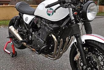 Quando si tratta di Inazuma, seguiamo i progetti café racer con molta attenzione. Qualche settimana fa abbiamo pubblicato il work in progress di questa GSX1200 e il risultato finale ci sembra è eccellente. In particolare ci piace l'attenzione posta sui pannelli laterali che sono stati spostati per coprire lo spazio tra sella e telaio: in questo modo non è necessario abbassare il piano di seduta e la posizione di guida è molto più efficace senza bisogno di riposizionare le pedane. Al contrario, i fori lasciati dalla eliminazione dei riser dalla piastra di sterzo è una imperdonabile mancanza di precisione e, per essere completamente sinceri con il nostro amico Yann, ci piaceva di più il colore originale di questo bianco un po' anonimo... Ma questa è una gran bella moto, non c'è dubbio (ref.).