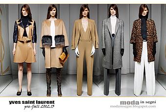 Assume una sfumatura diversa l'animalier in maison YSL: perde i suoi caratteri glamour, la sensualità accattivante ed animalesca per diventare un pattern cerebrale, un feticcio razionalizzato conduttore di una nuova energia. Gli elementi coniugati da Stefano Pilati in ogni collezione conservano sempre un che di alchemico e massonico: la pelle, la pelliccia, il tessuto maschile, le linee pulite, s'incastrano in soluzioni che, seppur semplici, colgono sempre un rigore intellettuale che nessuno mai aveva fissato. E' un pugno violento che scuote lo stomaco e lascia il sangue a ribollire. La pelle, lucida, si alterna a flanelle di lana cashmere, un caramello sabbioso al grigio virile, al bianco e ai ricami in fil di bronzo dei tessuti operati. Una scarpa maschile o un cuissards dalla punta dorata completa l'outfit come un puntale che ne estremizza la verticale. Bellissima e terribilmente couture.