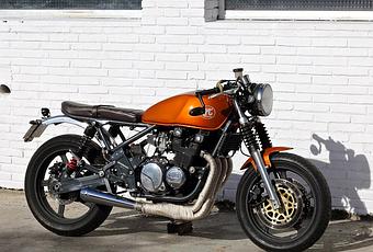 Basic specs provided by the builder: Audi pearl orange. GSXR 1000 Brake master cyclinder. Kawasaki 600 brake discs. Galfer braided lines. Burly Brand shocks.Bridgestone BT045 tires. Megathone custom exhaust,