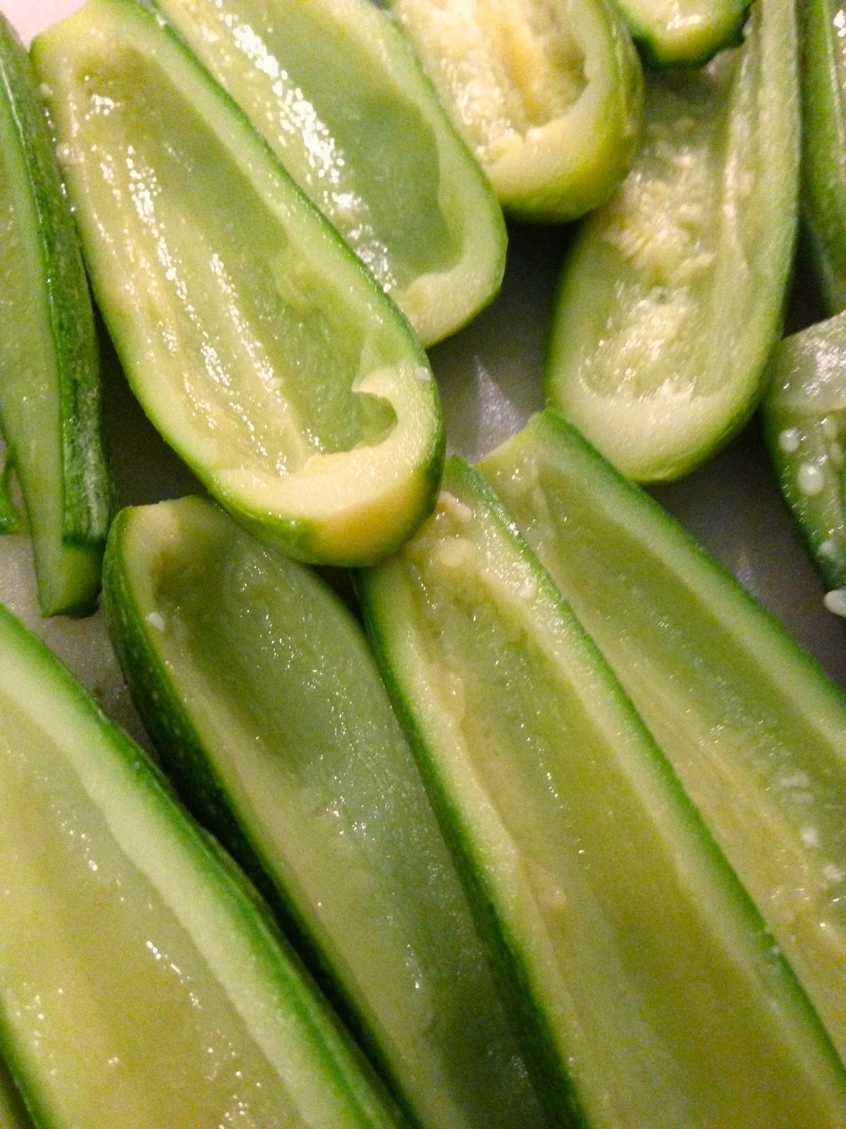 After cooking, the zucchini will turn out with a light, crispy crust.