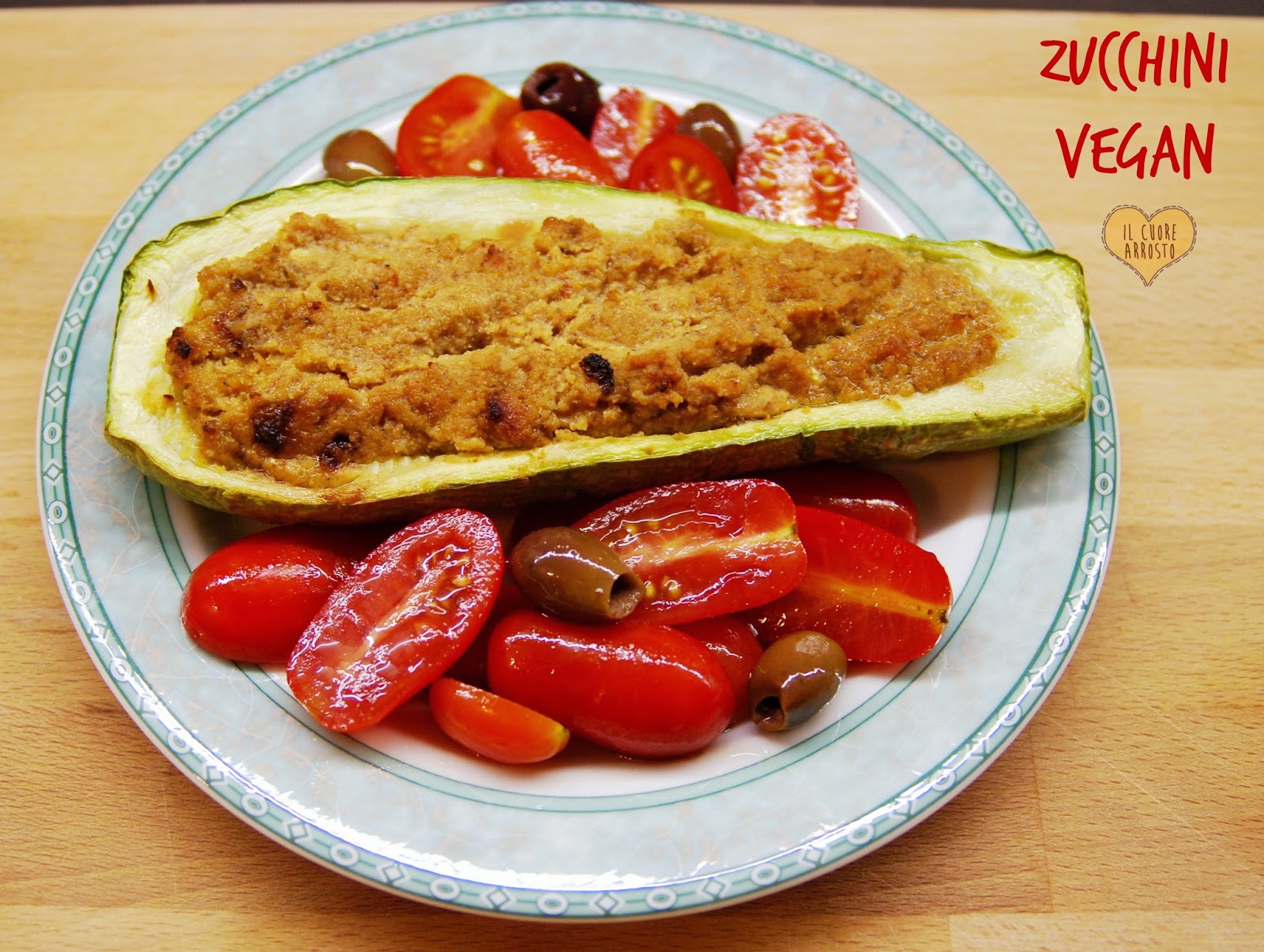 Procedura: Tagliate le zucchine a metà e togliete la polpa interna scavandole con un cucchiaino, mettete la polpa da parte. In un contenitore mettete la polpa delle zucchine, i pomodori secchi, le olive e il tofu tagliato a pezzetti e con il frullatore a immersione frullate il tutto fino a ridurlo a crema, unitevi il pangrattato e mescolate. Aiutandovi con un cucchiaio riempite le zucchine col composto, conditele con un filo di olio evo e un pizzico di sale. Posizionate la carta forno in una pirofila di alluminio, inserite le zucchine e infornate in forno caldo a 200°C per 40 minuti (regolatevi col vostro forno), sfornate e fate raffreddare. Sono buone sia calde che a temperatura ambiente.