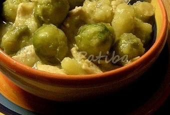 500 gr. di Cavolini (cavoletti) di Bruxelles, 100 gr. di bacon (o pancetta affumicata), 500 gr. di patate, 2 carote, 1 cipolla, un dado da brodo o brodo di verdura, olio, burro, sale, pepe, prezzemolo.