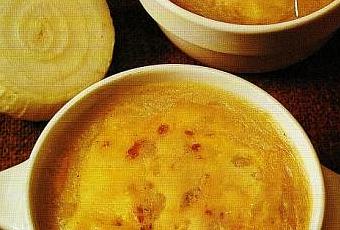 500 gr. di cipolle bianche, 40 gr. di farina, 80 gr. di burro, 1 litro e 1/4 di bodo di pollo, 100 gr. di formaggio,